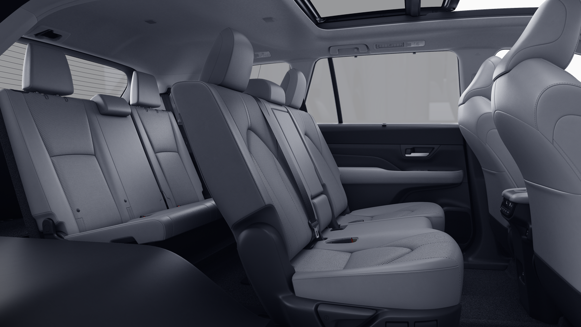 • 7-passenger seating with second-row fold-down captain's chairs and fold-down inboard armrests, adjustable headrests and two cup holders mounted on the floor; and 60/40 split, fold-down third-row seats with sliding headrests and recline function