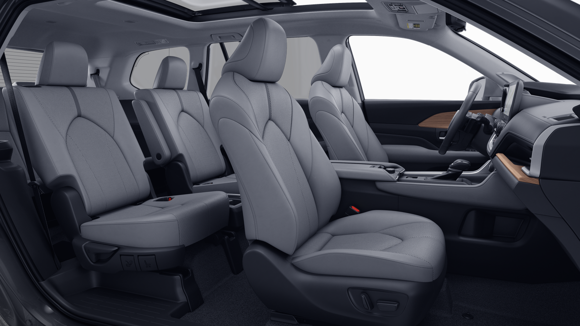 • 7-passenger seating with second-row fold-down captain's chairs and fold-down inboard armrests, adjustable headrests and two cup holders mounted on the floor; and 60/40 split, fold-down third-row seats with sliding headrests and recline function
